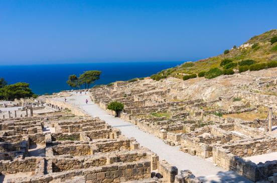 Eine Warnung vorweg: Während der Saison überschwemmen oft mehrere Busladungen von Menschen das Ausgrabungsgelände. Wer den Rundgang genießen will, sollte gleich zu Beginn der Öffnungszeit oder kurz vor Schluss kommen. Kámiros war die kleinste der drei dorischen Städte und hatte ihre Blütezeit im 6.Jh. v.Chr. Wiederentdeckt wurde sie erst in der Mitte des 19.Jhs., ausgegraben von den Italienern erst in den 1930er-Jahren. Die Stadt ist an einen Hang gebaut worden. Von den Häusern aus schaut man auf grüne Felder, Pinienwälder und Olivenhaine, und die Bewohner der Oberstadt hatten sogar die Küste im Blick. Diese Aussicht kann man selbst heute noch genießen - kein Hotel, keine Industrieanlage verstellt bisher den Blick. Für die ausgesucht schöne Lage ihrer Stadt haben die Einwohner von Kámiros allerdings teuer bezahlt. 226 v.Chr. zerstörte ein Erdbeben fast sämtliche Gebäude. Die Menschen bauten ihre Stadt trotzdem wieder auf. Rund drei Jh.e später, 142 n.Chr., machte ein weiteres großes Beben Kámiros dem Erdboden gleich. Diesmal wollte niemand mehr bleiben - der Ort wurde verlassen. Die Ruinen des "rhodischen Pompeji" stammen größtenteils aus hellenistischer Zeit. Die Stadt steigt terrassenförmig an. Die untere Terrasse wurde aus dem Hang gehauen, durch Aufschüttungen und eine Stützmauer befestigt und zu einem Marktplatz, der Agorá, ausgebaut. An den Seiten standen Heiligtümer, Statuen und Wohnhäuser. Der kleine Tempel in der Mitte war vermutlich dem Gott Apollo geweiht. Östlich vom Apollotempel liegt ein Festplatz mit niedriger Zuschauertribüne. Wahrscheinlich fanden dort zu Ehren des Gottes rituelle Handlungen statt. Der Platz grenzt im Westen an ein Wohnviertel, das direkt an der antiken Hauptstraße liegt. Sie führt vorbei an einem öffentlichen Bad, einem Brunnenhaus (an mehreren Stellen erhaltene Tonröhren zeugen vom antiken Wasserversorgungs- und Kanalisationssystem) und weiteren Wohnvierteln bis zur Akropolis, von deren einst prächtigen Bauten allerdings kaum etwas erhalten geblieben ist. Auf dem großen Gelände bekommen Sie jedoch einen guten Eindruck vom Leben in einer hellenistischen Stadt.