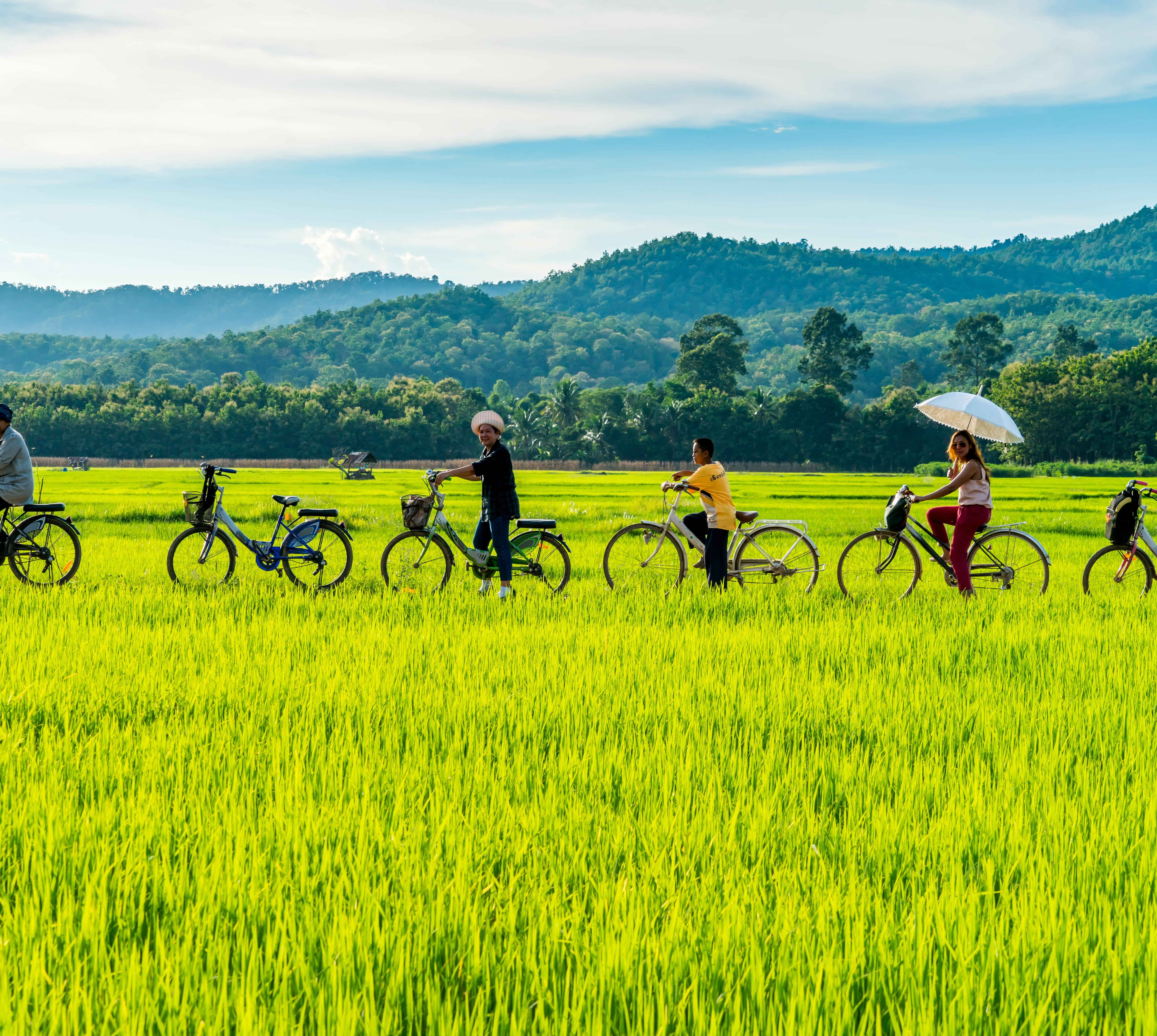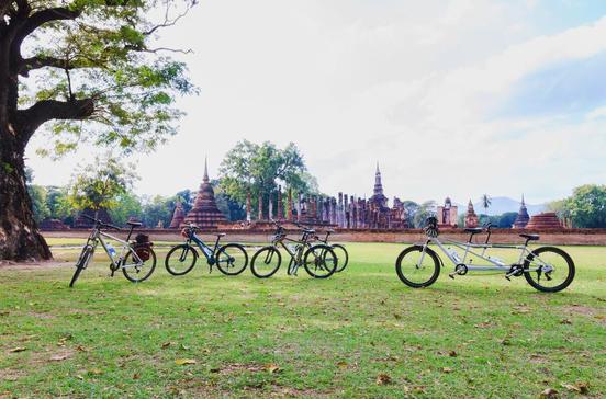 Die Tempel des Parks lassen sich gut mit dem Fahrrad erkunden, z. B. auf einer informativen geführten Mountainbiketour mit Cycling Sukhothai, die außerdem Fahrten in die Umgebung anbieten.