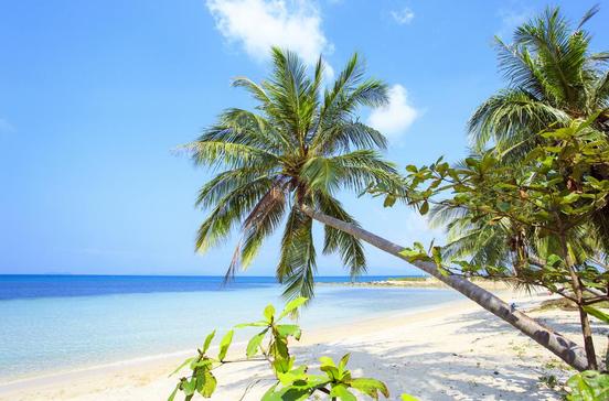 6 km langer, weißer Sandstrand zwischen blauem Meer und Palmenspalier begeistern auch verwöhnte Strandkenner.