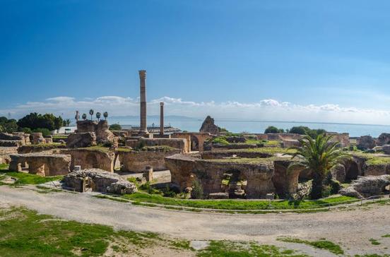 Karthago ist von allen der geschichtsträchtigste Vorort: 814 v. Chr. von Phöniziern gegründet, war Quart Haddash Hauptstadt des punischen Reichs und Beherrscherin der Handelsrouten zwischen Sizilien und der Straße von Gibraltar, bis sie von den Römern im Jahr 146 v. Chr. zerstört wurde. Die Stadt wurde unter Cäsar und Augustus wiederaufgebaut und glänzte als Königin der römischen Kolonien in Nordafrika. Nach Roms Niedergang, der Plünderung durch Vandalen und Byzantiner und der Eroberung durch die Araber dienten ihre Tempel als Steinbruch für die Moscheen und Paläste von Tunis. Die Archäologen blättern nun Schicht für Schicht Karthagos Geschichte neu auf. Stellenweise liegen die Ruinen einfach am Straßenrand und sind nicht abgezäunt. Für die wichtigsten Sehenswürdigkeiten gibt es ein Sammelticket, das aber nur einen Tag lang gültig ist – also am besten vorher auswählen. Die historischen Stätten lassen sich auch super mit dem Fahrrad abfahren. Räder mieten – und auf Anfrage auch einen Guide – kannst du beim Start-up Le Lemon Tour. Beginne deine Tour am Tophet, dem von Gustave Flaubert in seinem Karthago-Roman „Salammbô“ grausig geschilderten Ort, an dem Tausende Kinder dem blutgierigen Gott Baal Hammon geopfert worden sein sollen. Bis in 4 m Tiefe fanden Archäologen am Opferplatz Urnen und Grabstelen, darunter viele von Kindern. Nicht übersehen solltest du den nahe gelegenen Punischen Hafen, in dem heute noch die Fischerboote der Tunesier liegen. Dort befindet sich auch das Ozeanographische Museum, wo neben einem riesigen Walskelett alle möglichen Unterwassertiere des Mittelmeers schwimmen, etwa Tintenfische. Der Byrsahügel war wahrscheinlich das Herz der punischen Stadt. Das Musée National de Carthage hier zeigt einige Ausgrabungsstücke der punischen Kultur. Beeindruckender ist allerdings der Blick von der Terrasse auf die Vororte. Die angrenzende frühere Kathedrale, die weithin sichtbar oben auf dem Hügel thront, ist oft zu Veranstaltungen geschlossen. Die im 2.Jh. von Kaiser Antoninus Pius errichteten Thermes d‘Antonin ein Stück weiter nördlich zwischen Hauptstraße und Meer zählten zu den größten und luxuriösesten Badetempeln der römischen Welt. Denk bei den Ausmaßen daran: Du gehst die meiste Zeit nur durch die Katakomben! Die wieder aufgerichtete Säule zeigt mit ihren 15 m Höhe, wie riesig die Thermen einmal waren. Oben auf dem Hügel steht übrigens der tunesische Präsidentenpalast. Nicht weit entfernt zeigen die Villes Romaines, mehrere römische Villen, in welchem Luxus wohlhabende Römer damals wohnten. Hier befindet sich auch das ebenfalls im 2.Jh. erbaute Amphitheater, Veranstaltungsort des renommierten Festival de Carthage. Ein wenig den Hügel hinauf Richtung La Marsa geht es vorbei an der schon von außen beeindruckenden Moschee, die der frühere Präsident Ben Ali errichten ließ. Zwischen den umliegenden Weizenfeldern ist der amerikanische Soldatenfriedhof ein Ort der Ruhe. 2841 Menschen sind hier begraben, die weißen Kreuze symmetrisch angeordnet. In einer kleinen Nebenhalle zeigen riesige Wandmosaiken die Geschichte vom „Krieg gegen Deutschland“. Tunesien war ein kurzer, aber wichtiger Schauplatz im Zweiten Weltkrieg.
