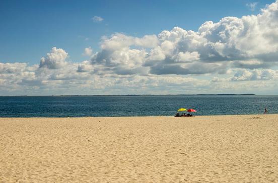 Über 7 km feiner Sandstrand. Am s Weststrand südlich der Haupttreppe liegen die FKK-Strände, ein Stück in Richtung Norden kommt man zum Hundestrand. Der relativ geschützte Oststrand ist super für Segler, SUPer, Kite- und Windsurfer, die ihren Stütz- und Treffpunkt am Ende der Promenade bei Südkap-Surfing haben.