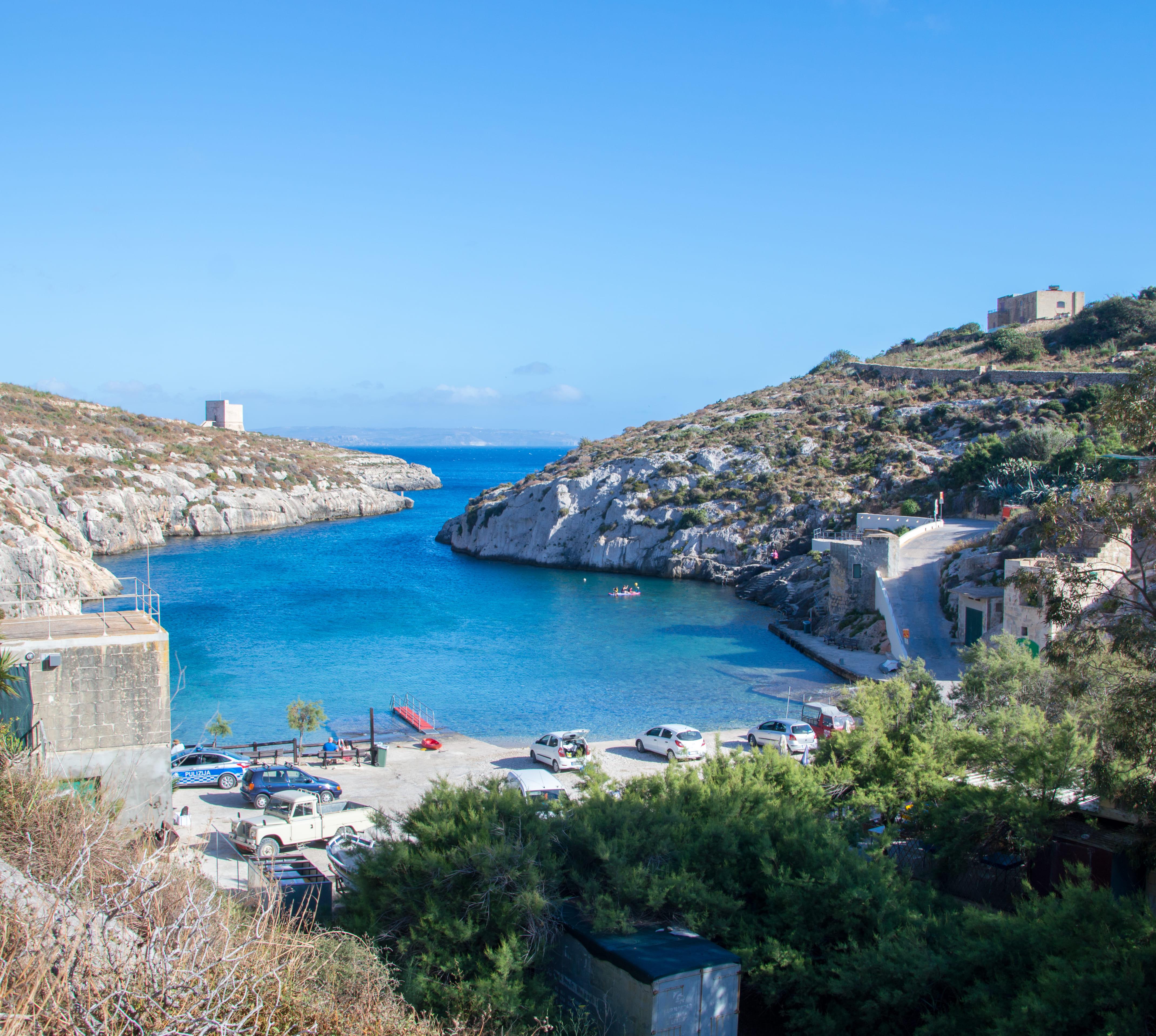 2 km lange, schmale Felsbucht mit dem Strandbad des Luxushotels Ta' Cenc und Liegeflächen auf Beton. 2,5 km unterhalb des Dorfs Sannat