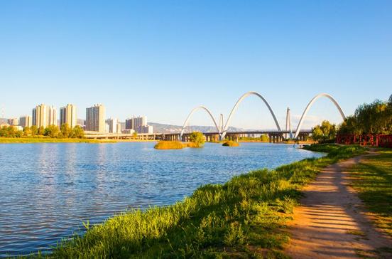 Der Ort (rund 4 Mio. Ew.) liegt am Fen-Fluss inmitten einer fruchtbaren Ebene und wurde außerhalb der Altstadt sehr großzügig angelegt.