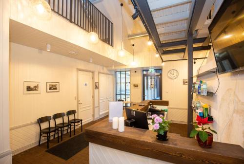 St. Olav is decorated with a combination of antique and wooden furniture. Guests have the option to purchase bathrobes and slippers at the reception.