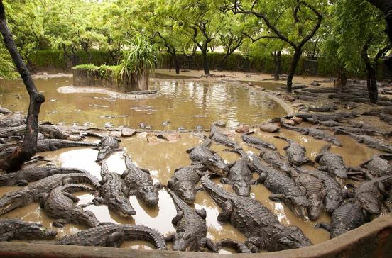 Rund 40 km südlich von Chennai werden verschiedene Arten indischer Krokodile und Alligatoren in offenen Pools gehalten.