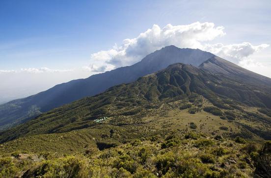 Der 4566 m hohe Gipfel des Mount Meru lässt sich nicht nur schneller und deutlich billiger als der Kilimandscharo bezwingen– man hat den Berg über weite Strecken auch ganz für sich allein. Eine Gipfeltour dauert drei Tage. Vom Momela Gate auf 1500 m geht es durch von Giraffen durchwandertes, dichtes Waldland in vier bis fünf Stunden bis zur Miriakamba-Hütte (2600 m). Am zweiten Tag dünnt der Wald langsam aus, nach drei bis vier Stunden erreicht man die Saddle-Hütte (3600 m), von der du bei gutem Wetter den Kili siehst. Der dritte Tag ist Gipfeltag: Wer gegen 2 Uhr nachts startet, steht rechtzeitig zum Sonnenaufgang oben – und dann: puh, dieser Blick! Atmen nicht vergessen! Am Abend bist du wieder zurück am Ausgangspunkt.