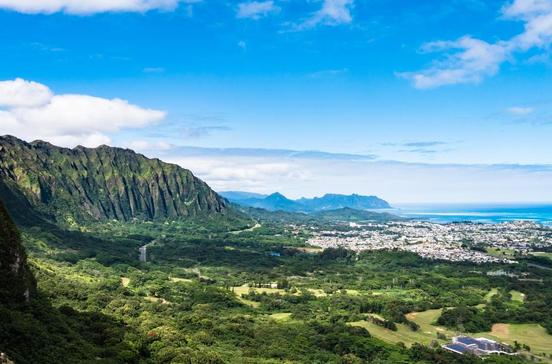 An der Ostflanke der Ko'olau Range brechen die Berge fast 1000 m steil zur Küste hin ab. Vom Aussichtspunkt hoch über dem Meer bietet sich ein weites Panorama über die grünen Klippen, von denen nach der Sage Kamehameha I. die Krieger von O'ahu in den Tod stürzte.