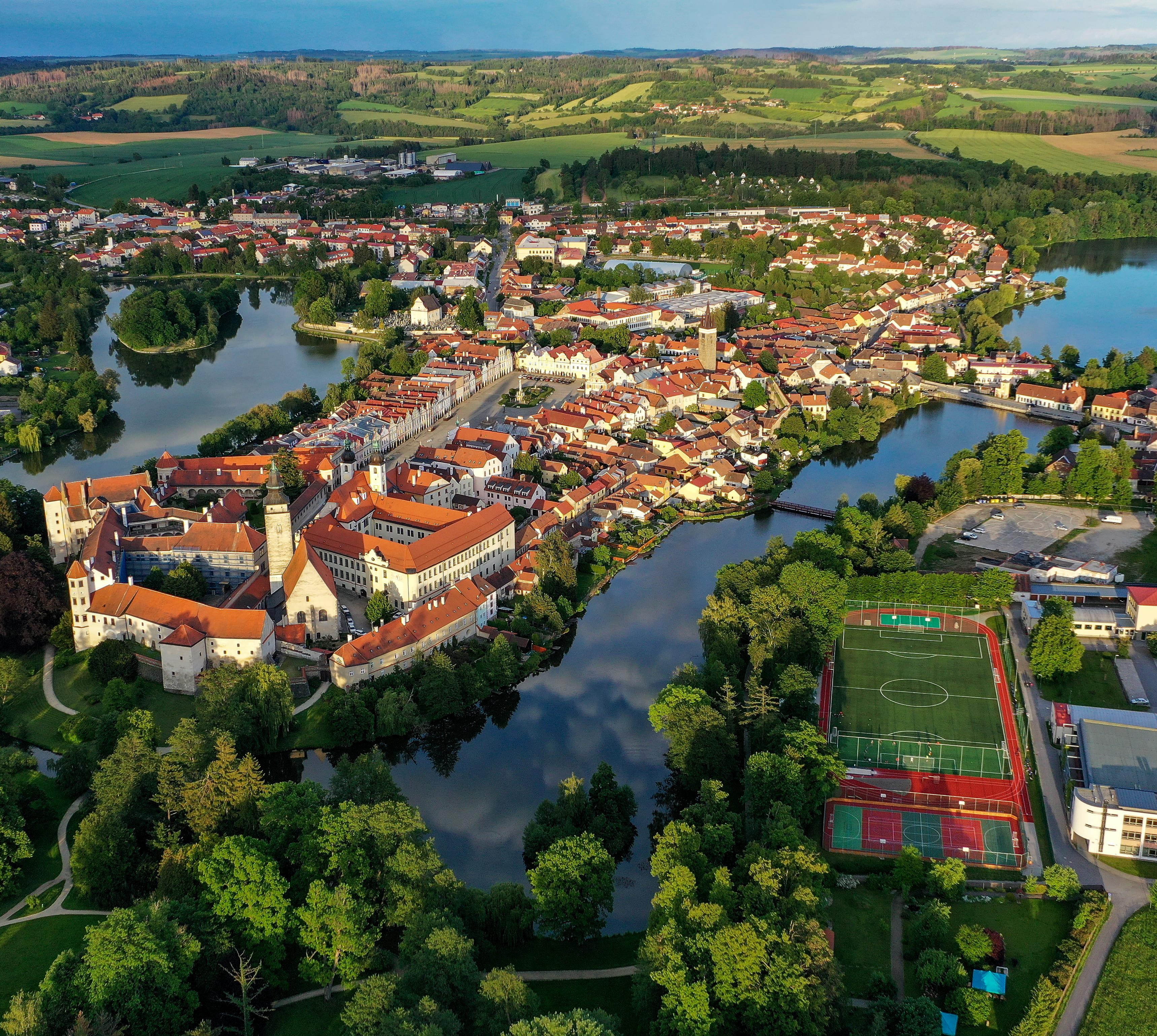 Das ganze Zentrum, das malerisch von Teichen umrahmt ist, stammt aus dem 16.Jh., als nach einem Großbrand die Stadt komplett neu aufgebaut werden musste. Seit 1992 steht der Ort mit den 6000 Ew. auf der Unesco-Welterbeliste. Telč diente schon oft als Kulisse für historische Filme.