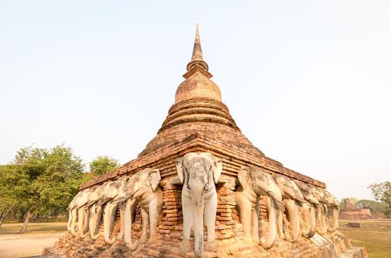 Das bedeutendste und größte Bauwerk ist der Wat Mahathat mit einem beherrschenden Chedi auf einem Reliefsockel, Säulenreihen und vielen Buddhastatuen, die teilweise restauriert wurden. Ganz in der Nähe befinden sich die drei Prangs des Wat Sri Sawai. Im Norden des einst ummauerten Stadtkerns erhebt sich auf einer Insel in einem künstlichen Teich der Chedi des Wat Phra Phai Luang. Die mit 11 m höchste Buddhastatue sitzt hinter den hohen Mauern und hölzernen Flügeltoren des Wat Sri Chum gleich nebenan. Die Tempel des Parks kann man gut mit dem Fahrrad erkunden, z.B. auf einer informativen geführten Mountainbiketour.