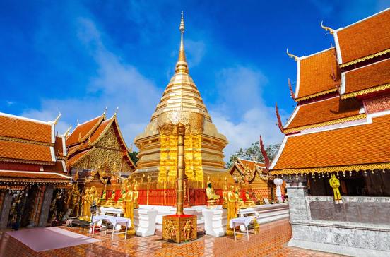 Berühmt in ganz Thailand ist dieses Kloster auf dem 1676 m hohen Suthep-Berg. Der Tempel liegt auf 1070 m Höhe und wurde als Heimstatt für eine Buddhareliquie schon 1338 erbaut. Eine von mythischen Nagaschlangen gesäumte Treppe führt vom Parkplatz über 306 Stufen hinauf. Wer nicht so gut zu Fuß ist kann auch eine Zahnradbahn für den Aufstieg benutzen. An Wochenenden pilgern die Thais in Scharen hierher.