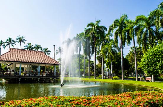 Eine kleine Oase zum Ausruhen in der südwestlichen Altstadt: leuchtende Blumenbeete unter Palmen, Wiesen und Teiche mit Fischen, die man füttern kann. Morgens und abends treffen sich die Bewohner zu Aerobics, Open-Air-Tanz, Massage oder Picknick. Matten gibt es zur Ausleihe. Die Kids können sich am Minispielplatz mit Rutsche austoben. Wer im Februar kommt, erlebt ein Blumenfest mit tollen Fotomotiven, dann herrscht hier üppige Flower-Power.