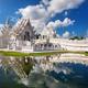 Buddha trifft auf Batman in dieser surrealen Tempelanlage des berühmten thailändischen Künstlers Chalermchai Kositpipat. Ganz in Weiß strahlt das Gesamtkunstwerk aus Architektur, Skulpturen und Gemälden, das sich in Sachen Kitsch mit keinem anderen Tempel in Thailand vergleichen lässt. Aber mit durchaus ernsthaftem Hintergrund, denn es geht dem Künstler hier um die Machtspiele in der Welt, etwa wenn der Erleuchtete gegen den Dämon Mara besteht ...