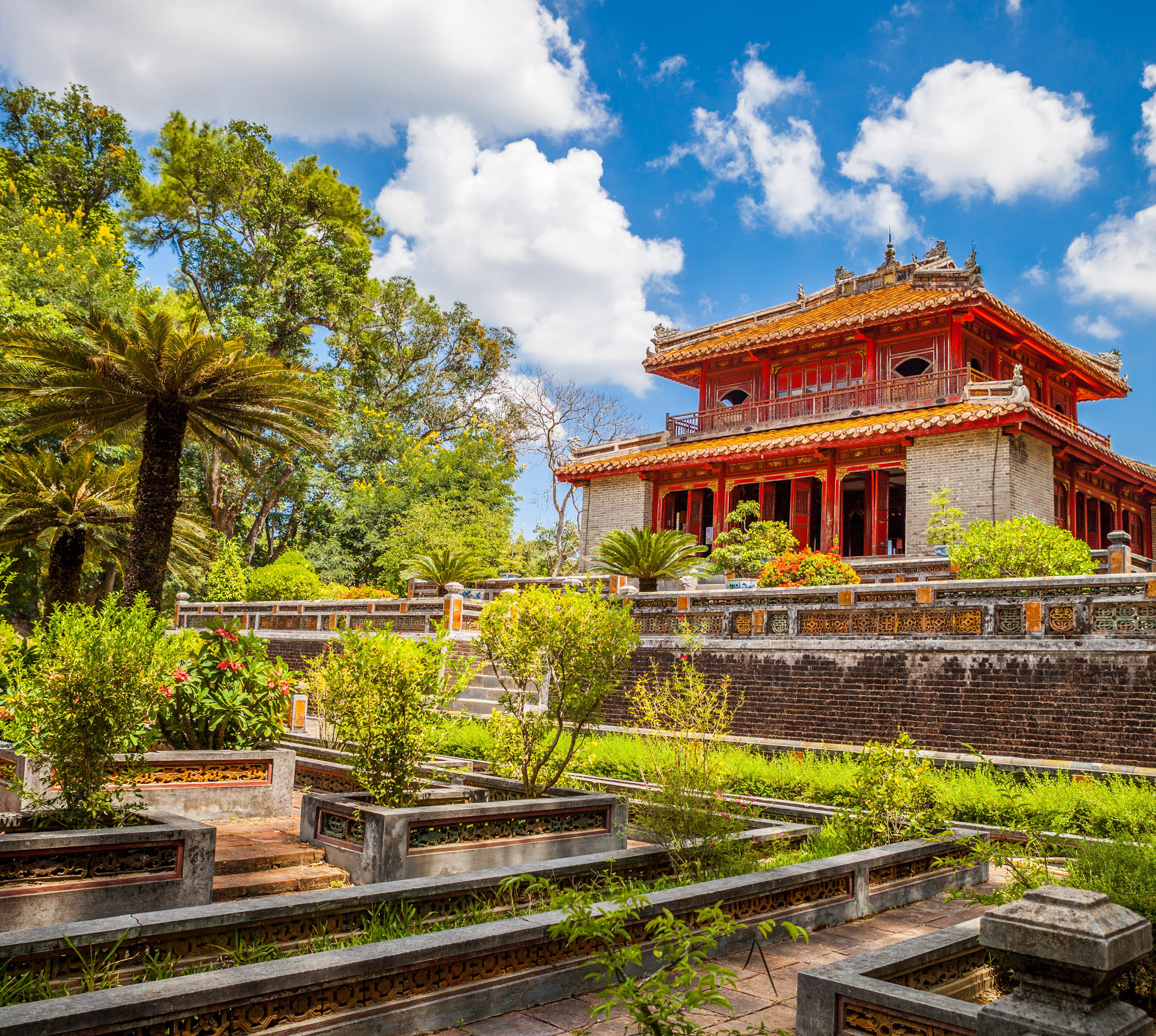 In der alten Kaiserstadt folgt man den Spuren der ehrwürdigen Herrscher in ihre Paläste oder fein schmausend beim Royal Dinner – und der Strand ist auch hier nicht weit. Von 1802 bis 1945 war Hue (heute 430 000 Ew.) die Hauptstadt der letzten Kaiserdynastie, der Nguyen. Da die Stadt auf halbem Weg zwischen Hanoi und Saigon liegt, entwickelte sie sich zu einem Drehkreuz von Zentralvietnam. Vor allem die idyllische Lage beiderseits des von sanften Hügeln flankierten, träge dahinfließenden Song Huong (Parfümfluss) trägt zu ihrem Flair bei. Auch seine traditionelle Bedeutung als Beamten- und Gelehrtenstadt hat Hue bewahrt, mit einigen der wichtigsten Hochschulen des Landes. Nicht zuletzt prägen freundliche, weltoffene Einwohner die Atmosphäre der Stadt.