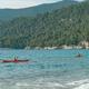 An diesem Strand werden Motorboote an Selbstfahrer vermietet.