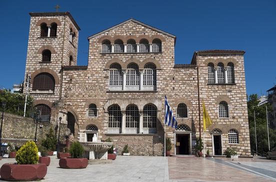 Die dem Stadtpatron geweihte Basilika birgt in einem silbernen Sarkophag im linken Seitenschiff die Gebeine des heiligen Demetrios. 303 starb er den Märtyrertod in den römischen Thermen, von denen in der Krypta noch Reste erhalten sind. Die Kirche wird den ganzen Tag über von zahlreichen Pilgern aufgesucht. Insbesondere russische Pilgergruppen lassen hier häufig gregorianische Choräle erklingen.