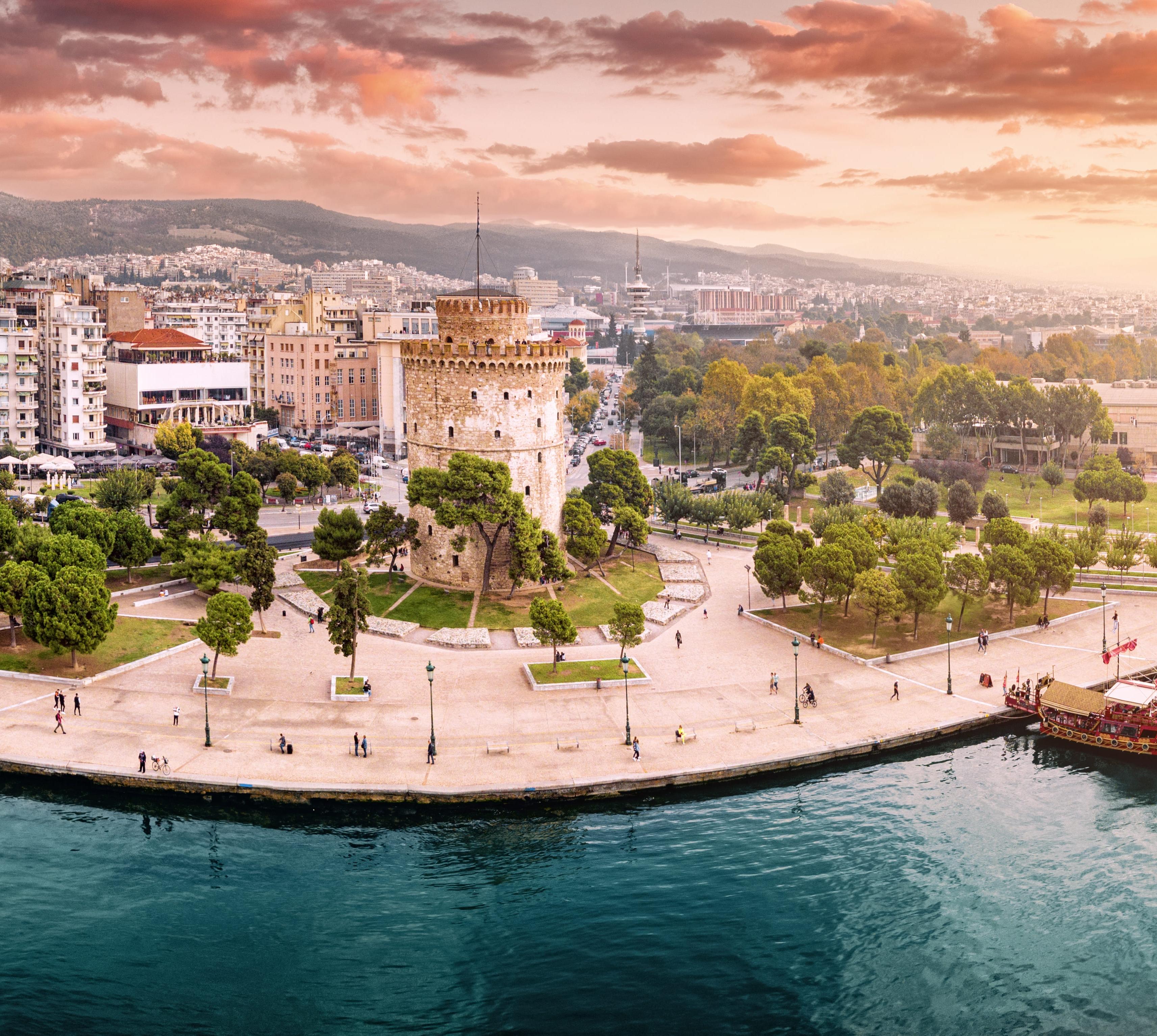 Die mit Vororten über 1 Mio. Einwohner zählende Balkanmetropole zieht sich einen Hang bis zum Burgviertel hinauf. Die Unterstadt ist mit mittelalterlichen Kirchen, osmanischen Bauten, Museen und antiken Ruinen gespickt. Die Märkte im Zentrum sind noch altmodisch-urig, Cafés, Bars und Tavernen hochmodern und gut gestylt. Statt Discountern und Kaufhäusern sorgen Tausende von privaten Einzelhändlern für Shoppingvielfalt. Alte Gewerbeviertel in Hafennähe wurden zu Zentren des nächtlichen Lebens, für größere Events werden ehemalige Industriemühlen und Brauereien am Stadtrand genutzt. Hier ist immer was los. Die Strände der Chalkidikí sind nur eine gute Stunde entfernt, aber Badeboote fahren im Sommer auch direkt vom Stadtzentrum zu Stränden ganz in der Nähe.