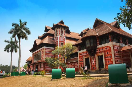 Architektonische HighlightsDieser zweistöckige Palast mit mehr als 80 Räumen ist auch unter dem Namen Puthen Mailika bekannt. Er wurde 1844 für den Maharaja Swathi Thirunal im typischen Kerala-Stil gebaut, mit prächtigen Schnitzereien und lebensgroßen Figuren. Einige Teile wurden in ein Museum umgewandelt. Herausragend sind der 140 Jahre alte Elfenbeinthron und holzgeschnitzte Pferde an der oberen Brüstung sowie Sänften, Waffen und Kathakali-Bilder in Lebensgröße.