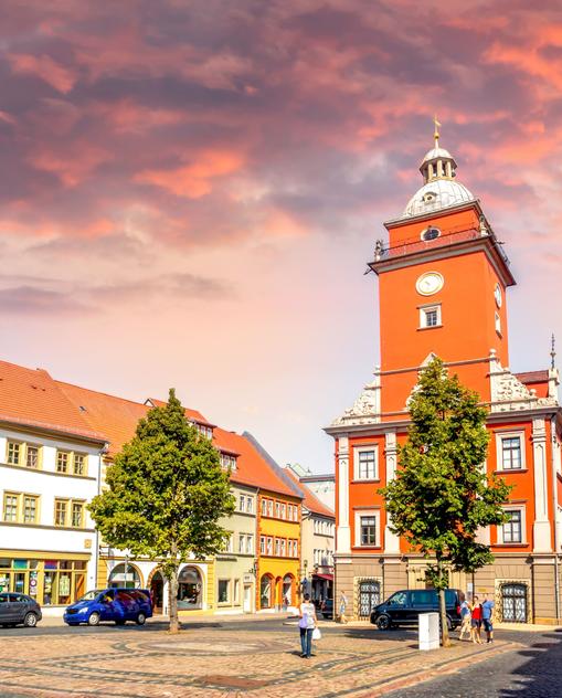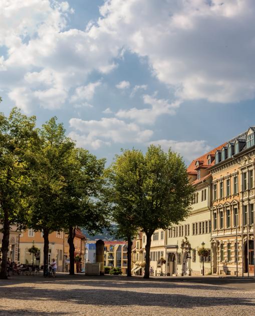 Thüringen war vom 16.Jh. bis ins 18.Jh. hinein das klassische Beispiel deutscher Kleinstaaterei, es sah auf der Landkarte wie ein Flickenteppich aus. Das hatte auch seinen Vorteil, denn die Fürsten, die keine politische Macht erlangen konnten, entwickelten das, was heute als Standortwettbewerb bezeichnet wird. Jeder wollte im Kulturleben besonders glänzen, was zu dem Kunst- und Kulturreichtum führte, mit dem Thüringen heute aufwartet. Den Spitzenplatz errang Regent Carl August: Er holte die vier großen Denker Goethe, Schiller, Christoph Martin Wieland und Johann Gottfried Herder und machte Weimar zur Hauptstadt der deutschen Klassik. Tausende von Touristen aus aller Welt kommen deshalb angereist und besuchen die Altstadt.