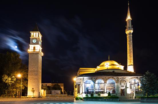 So viel Verspätung hat nicht mal der Flughafen BER geschafft! Die Große Moschee wurde in den 1920er-Jahren geplant, dann kamen italienische Besatzung und kommunistische Herrschaft dazwischen. 1993 wurde schließlich der Grundstein gelegt, die Bauarbeiten begannen aber erst 2014.Inzwischen stehen die vier Minarette und zwei Gebetsräume, finanziert hauptsächlich von der türkischen Diyanet-Stiftung. Das versprochene Museum des Zusammenlebens innerhalb des Moscheegeländes, welches die friedliche Koexistenz der Religionen zum Gegenstand haben soll, lässt jedoch ebenso auf sich warten wie die offizielle Eröffnung des gesamten Komplexes. Trotzdem beeindruckend.