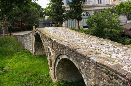Wenige Meter vom Bulevardi Zhan D‘Arc entfernt steht die Ura e Tabakëve, eine osmanische Brücke, die einst eine zentrale Verkehrsverbindung war. Mit ihren drei Bögen markierte die Brücke den südöstlichen Rand von Tirana und verband die Stadt mit dem Hochland, besonders dem fernen Dibertal. Ihr Name, Tabakëve, erinnert an die Färber, Abdecker und Gerber, die hier tätig waren. Heute gehört die Ura e Tabakëve zu den wenigen erhaltenen osmanischen Baudenkmälern Tiranas, deren genaues Alter jedoch unklar bleibt. Häufig wird das 18.Jh. genannt.