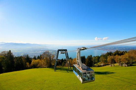 Bei gutem Wetter schweift der Blick vom Pfänder (1064 m) über beinahe 240 Alpengipfel. Gleich drei Gasthäuser kümmern sich auf dem Pfänder um hungrige und durstige Bergbesucher. Für jedermann geeignet ist der halbstündige Rundgang durch den Alpenwildpark. Der Pfänder ist außerdem ein Radlerparadies mit zahlreichen Mountainbike-Strecken.