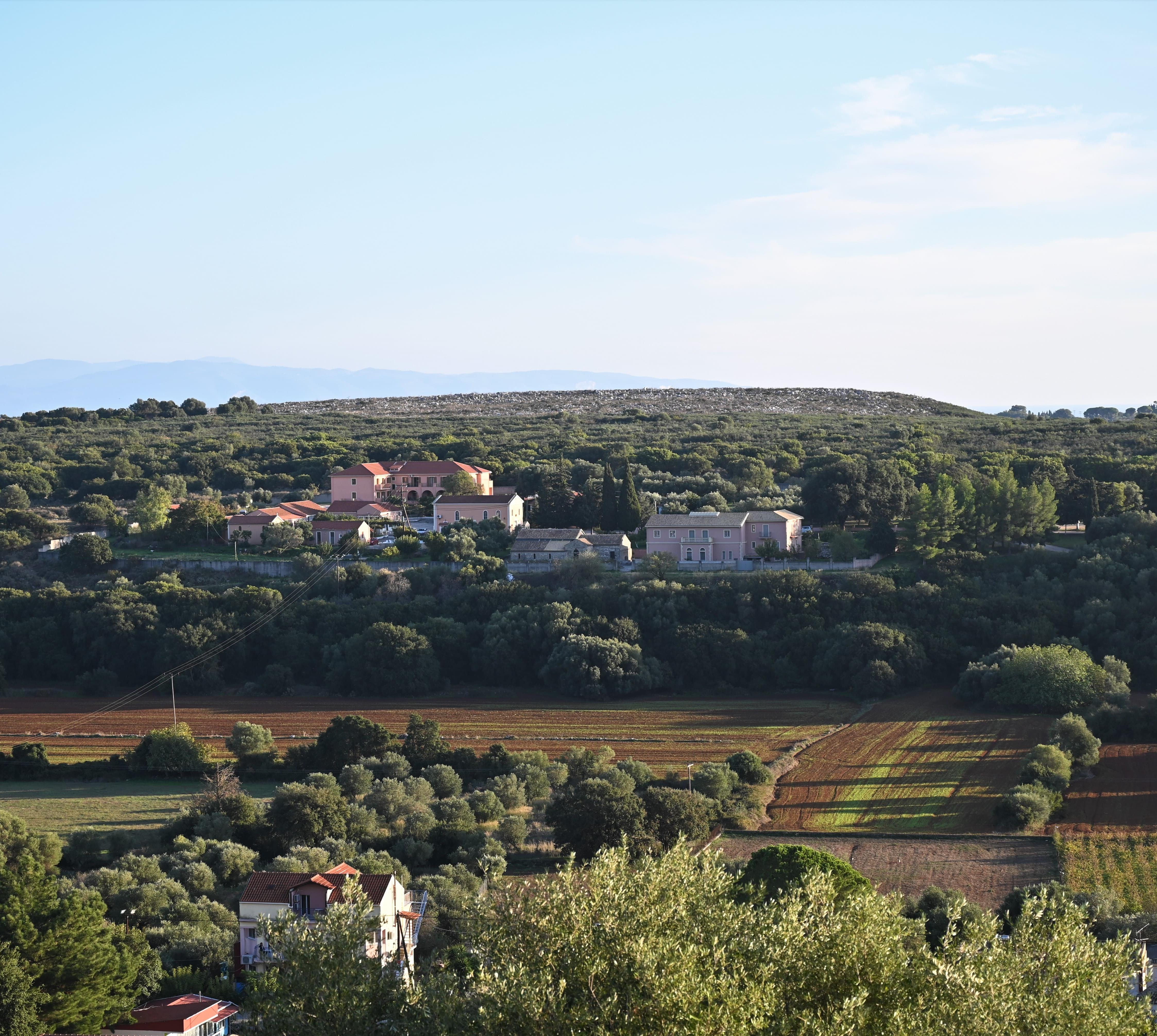 Über die Ebene des Livátho ragt ein 320 m hoher Bergrücken auf, der bis 1757 die Inselhauptstadt Ágios Geórgios trug. Geblieben sind von ihr die Burganlage der Venezianer, das Kástro, mit einem Mauerumfang von etwa 600 m und ein stilles Straßendorf, dessen Cafés und Tavernen von ihren Terrassen aus alle einen weiten Blick über die Insel erlauben.