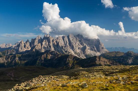in diesem östlichsten Zipfel des Trentino erheben sich die Zinnen der Palagruppe mit der Cima Vezzana (3192 m) und dem Cimon della Pala (3184 m).