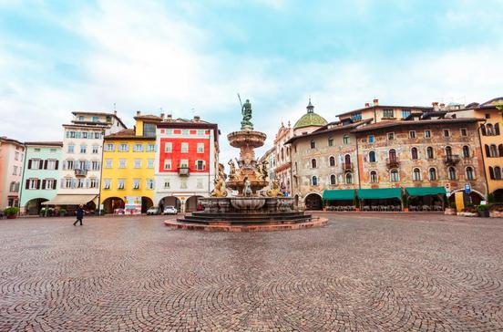Der Domplatz mit dem Neptunbrunnen von 1768 im Zentrum von Trento ist einer der schönsten Plätze Italiens.