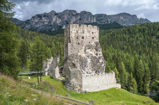 Unterhalb des Falzaregopasses liegt auf einem riesigen Felsblock die restaurierte Ruine. Einst war die 1027 erbaute Festung, eine der ältesten der Dolomiten, ein Kontroll- und Befestigungsposten für das Erz, das am nahen Monte Pore geschürft wurde. Der Museumstrakt befasst sich mit der Geschichte des Eisenerzes und der Gegend.