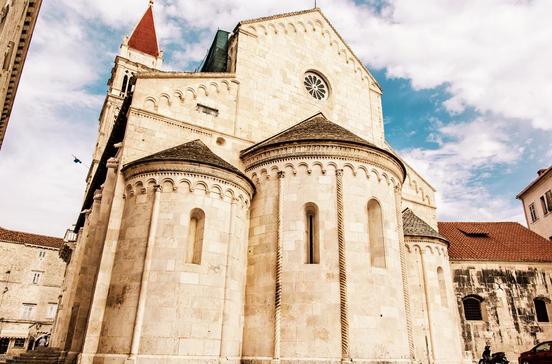 Von der Romanik im Erdgeschoss bis zur Renaissance in den oberen Etagen des Turms erzählen die harmonisch ineinandergreifenden Stile des Gotteshauses von seiner langen Bauzeit vom 13.bis zum 17.Jh. Ein Meisterwerk aus der ersten, der romanischen Phase ist das Hauptportal, das Meister Radovan mit einer Bildfolge von Szenen aus dem Alltagsleben schmückte und ihm links und rechts die auf Löwen stehenden Adam und Eva zur Seite stellte. Im Inneren begeistert die von Andrija Aleši, Nikola Firentinac und Ivan Duknović geschaffene Seitenkapelle für Bischof Ivan von Trogir - ein lichtes, vollkommenes Werk der Renaissance. Vom 45 m hohen Glockenturm öffnet sich ein schöner Altstadtblick.