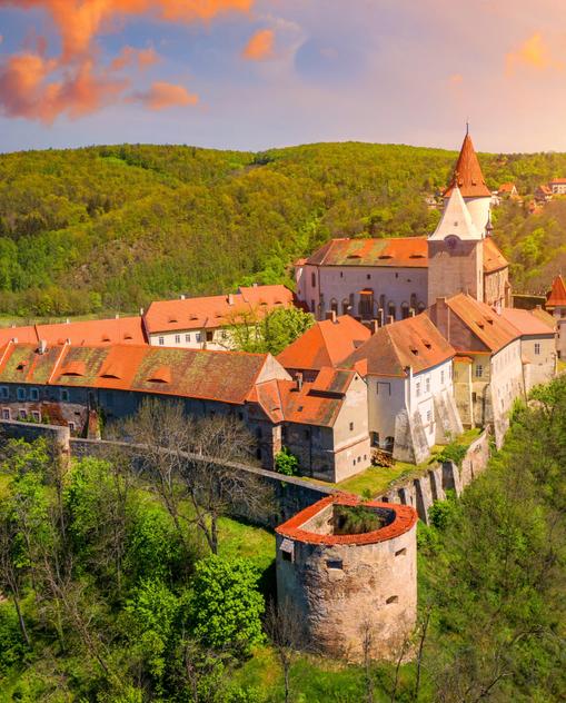 Schlösser, Glanz und alter Adel: In Böhmen und Mähren lässt es sich gut leben – und gut Urlaub machen! Genieße bei einer Wanderung in der Böhmischen Schweiz den Ausblick von einem der majestätischen Sandsteinfelsen, spaziere über die Karlsbrücke in Prag oder schieße ein Selfie vor dem Traum-Panorama von #eský Krumlov.