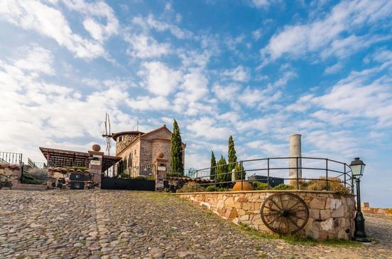 Die "Samtburg" auf dem Pagos-Berg bietet eine schöne Aussicht auf die Stadt und die Bucht. Erbaut von Alexander dem Großen erhielt die Siedlung später diverse Ergänzungen aus römischer und byzantinischer Zeit. Auf dem 160 m hohen Hügel Pagos (heute "Samtburg") gab es u. a. Aquädukte, ein Gymnasium, ein Stadion, ein Theater und eine Agora, deren Ruinen zu besichtigen sind.