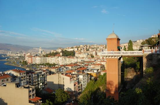 Am steilen Hang zwischen den Stadtteilen Mithat Paşa und Halilrifat Paşa wurde 1907 dieser doppelte Fahrstuhl gebaut, damit das traditionelle jüdische Viertel auf dem Hügel besser zu erreichen war. Früher mussten die Menschen über 155 Stufen klettern.