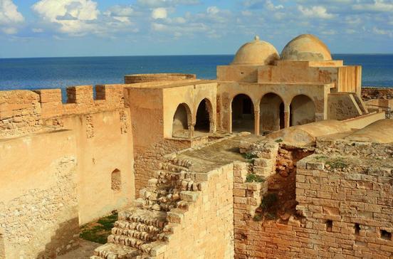 Der Wehrbau war früher eine Art muslimisches Kloster für Kriegermönche. Eine Kette solcher Ribats schützte die tunesische Küste und diente den Menschen im Angriffsfall als Unterschlupf. Dieses Ribat wurde im Jahr 821 auf nahezu quadratischem Grundriss mit drei runden Ecktürmen errichtet. Der vierte, über 27 m hohe Turm kam wohl erst später hinzu und bietet heute einen herrlichen Panoramablick über die Medina. Das Zugangstor in der Südmauer schmückt ein gotisch anmutendes Kreuzgratgewölbe. Ansonsten ist auch dieser faszinierende Bau völlig schlicht: Den Innenhof umgeben die Zellen der Kriegermönche, im ersten Stock befindet sich ein einfacher Gebetsraum.