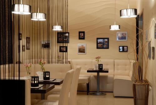 Im hoteleigenen Restaurant genießen Sie das Frühstücksbuffet sowie mediterrane und ukrainische Küche. In der großzügigen Loungebar entspannen Sie bei Cocktails und Livemusik.