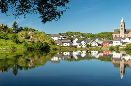 Der älteste und größte Vulkankrater der Eifel und das mit 11 000 Jahren jüngste Maar der Eifel sind in der Kleinstadt Ulmen zu finden. Letzteres kann auf einem 1 km langen Weg umrundet werden. Rund um den ebenfalls zum Ort gehörenden Jungferweiher führt ein 3 km langer Rundweg, auf dem Vogelfans auf ihre Kosten kommen, denn hier legen viele Vogelarten während der Reise gern einen Zwischenstopp ein. Einen schönen Blick aufs Maar hast du von der Kreuzritterburgruine.