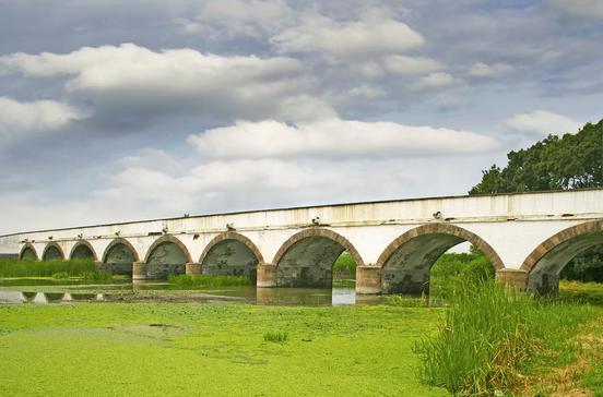 Das Bauwerk von 1827 ist mit seinen 167 m die längste Steinbrücke Ungarns. Sie verbindet die beiden Ufer des Hortobágy- Kanals miteinander.