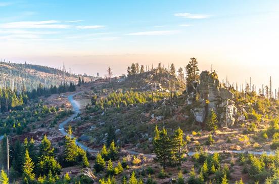 Rund 300 km Wanderwege führen durch die Urlaubsregion Sonnenwald, in deren Mitte der Brotjacklriegel (1016 m) thront. 127 Stufen bis zum Wow! Noch höher hinauf gelangst du im Aussichtsturm (April–Nov. tgl. 10– 17 Uhr | Eintritt 1 Euro). Im Turm-Stüberl kann man sich nach dem Aufstieg stärken. Urig ist auch der Gasthof zum Sonnenwald (5Zi. | Restaurant Mi geschl. | Tel. 09908 275 | zum-sonnenwald.de | €€) in Schöfweg.