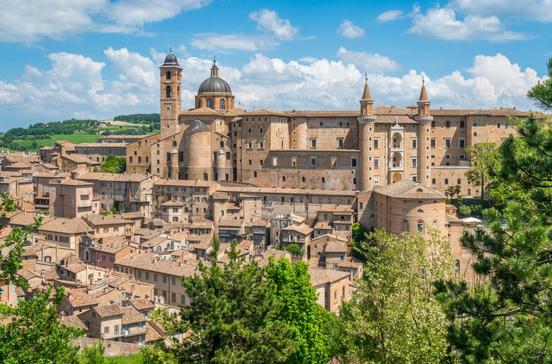 Urbino ist eine wunderschön gelegene, wie aus einem Guss gemachte kleine Museumsstadt. Im Palazzo Ducale, dem gewaltigen Renaissance-Palast, ist eine der schönsten Kunstsammlungen der Region untergebracht. Seine Anlage gleicht eher einer Stadt von Palästen, die von Mauern umgeben ist.