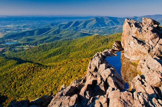 Inmitten dieses für seine Schönheit berühmten Nationalparks, eine Fahrstunde westlich von Washington, beginnt der Skyline Drive, eine Panoramastraße mit herrlichen Aussichten auf das Tal des Shenandoah River und über die berühmten Blue Ridge Mountains.