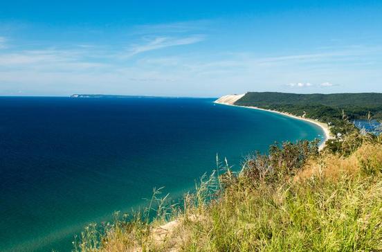 Eines der eindrucksvollsten Naturwunder an den Großen Seen liegt rund 50 km westlich von Traverse City: Auf gut 60 km Länge ziehen sich am Ufer des Lake Michigan gewaltige Wanderdünen hin, die die Westwinde aus dem von den Gletschern zurückgelassenen Sand aufgetürmt haben. Bis zu 140 m hoch sind die Dünen, zwischen denen der 13 km lange Pierce Stocking Scenic Drive im Südteil des Naturschutzgebietes hindurchführt. Schön für einen Tagesausflug auf dem Wasser ist die Bootsfahrt vom hübschen Fischerort Leland zu den Manitou Islands, zwei Wildnisinseln vor der Küste.