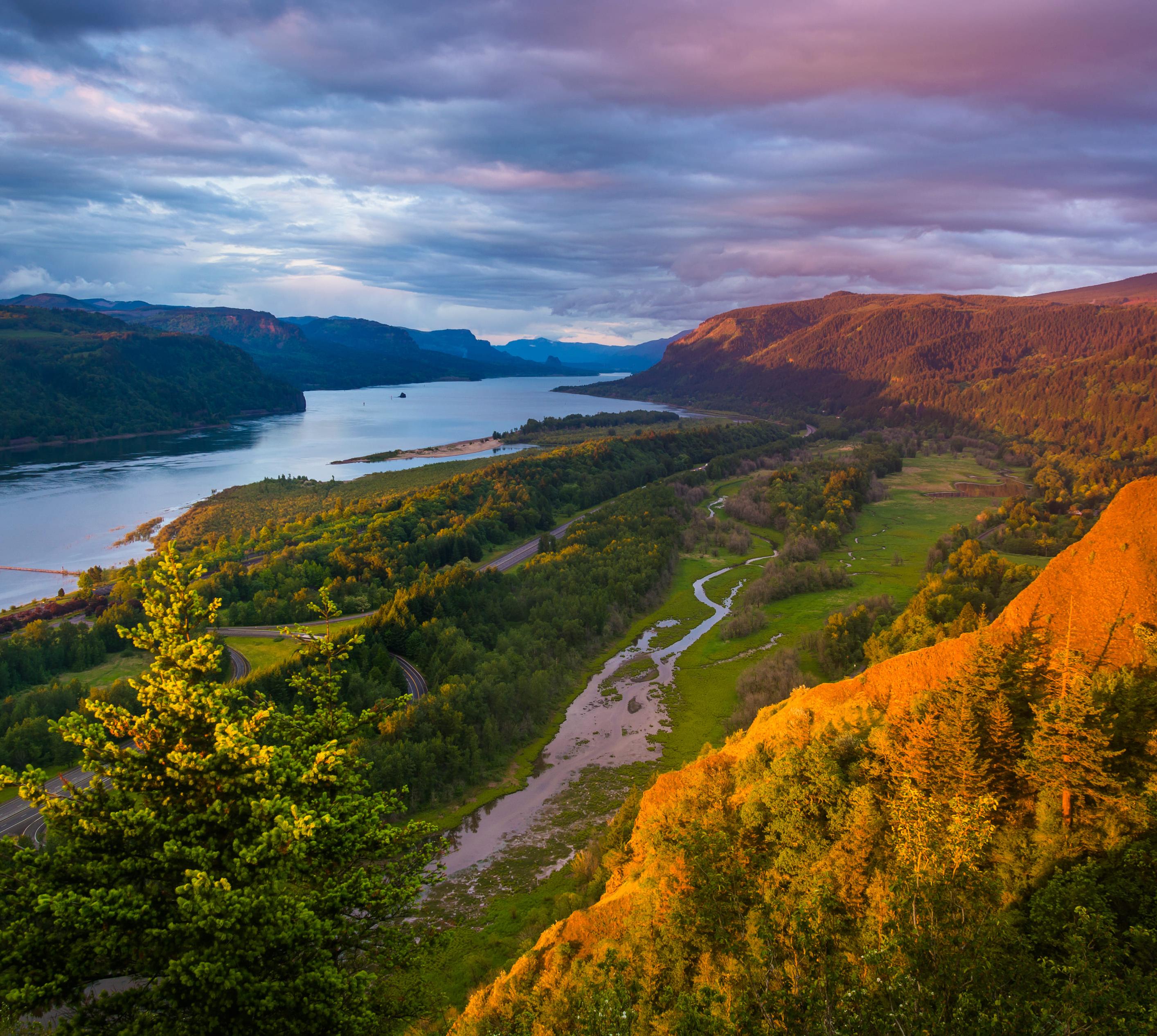 Nur zwei Großstädte können die beiden Staaten Oregon und Washington aufweisen: die sympathisch-alternative, für amerikanische Verhältnisse fast kleine Metropole Portland und das erst 1851 gegründete, enorm wirtschaftskräftige Seattle. Die Stadt von Boeing, Microsoft und Amazon punktet mit ihrer Lage an einer zerklüfteten Meeresbucht und dem Blick auf den gletscherbedeckten Mount Rainier. Den Weg ins Hinterland öffnet der mächtige Columbia River. Nördlich von ihm liegt der Mount Saint Helens, der aktivste in einer ganzen Reihe von Vulkanen, die sich als Cascade-Kette parallel zur Küste hinziehen. Die Berge wiederum schützen das Hinterland vor den Regenwolken des Pazifiks und machen die weiten Ebenen im Osten zur Steppe.