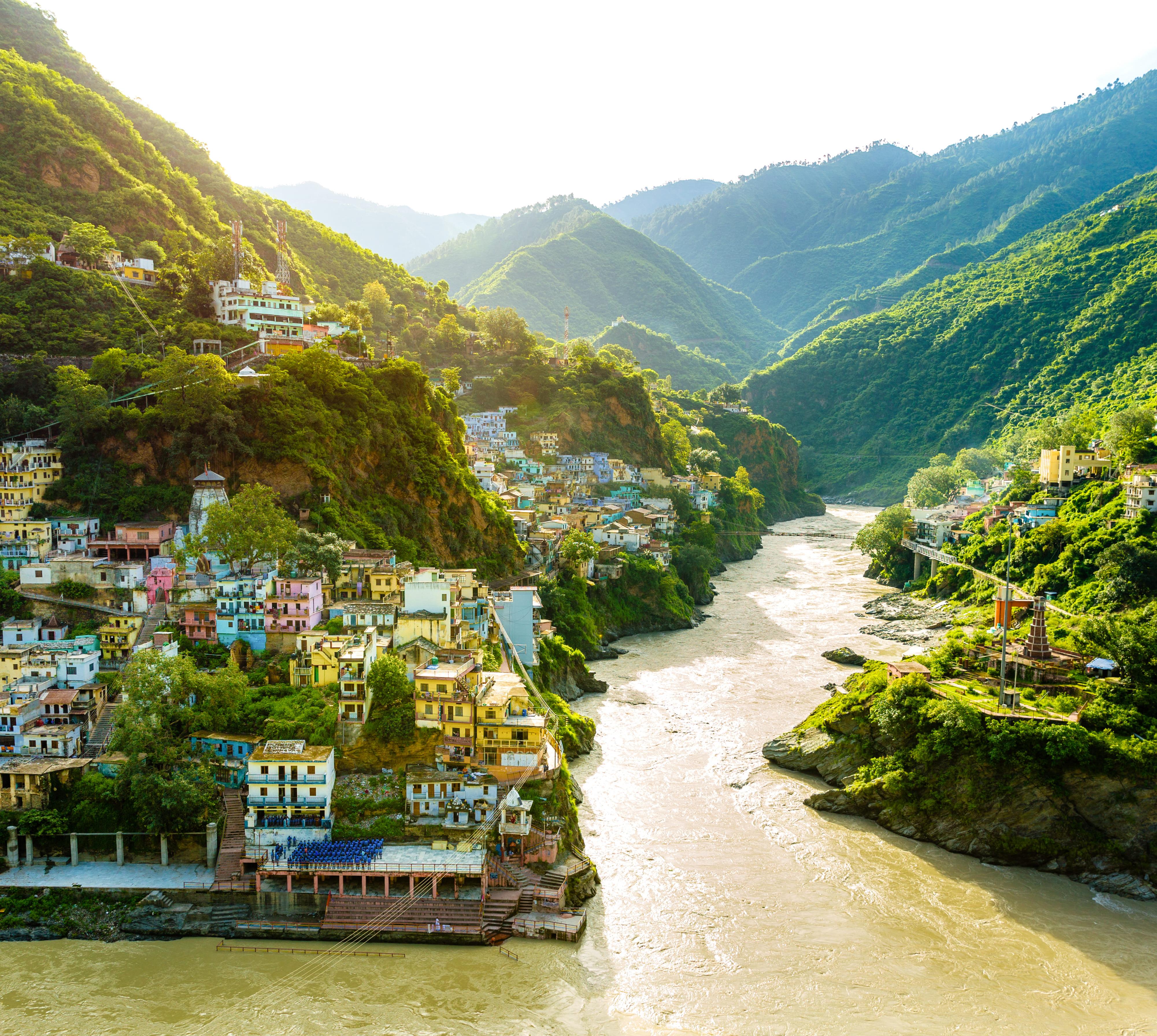 Hier, am Fuß des Himalaja, ist der Ganges noch jung, sauber und besonders heilig. In Rishikesh, der selbst ernannten Yogahauptstadt der Welt, kommt der Fluss aus einem engen Tal und strömt mit grünklarem Wasser an Sandbänken vorbei.