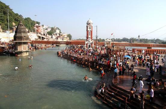 Stufen zu Gott - so heißt das Haupt-Ghat, auch Brahma Kund genannt, wo man einen Fußabdruck des Gottes Vishnu vermutet und wo viele Pilger von den Treppen aus ins Wasser steigen, nicht ohne sich jedoch vorher an großen Eisenketten festzuhalten oder festzubinden. Das Har-ki-Pauri ist auch Hauptschauplatz der Khumb Mela.