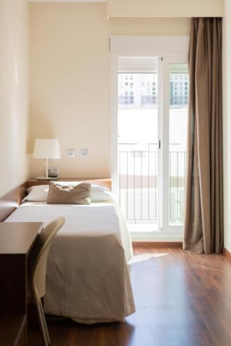 Die hell und modern eingerichteten Zimmer im Hi Valencia Canovas verfügen über Heizung, einen Ventilator und einen TV.