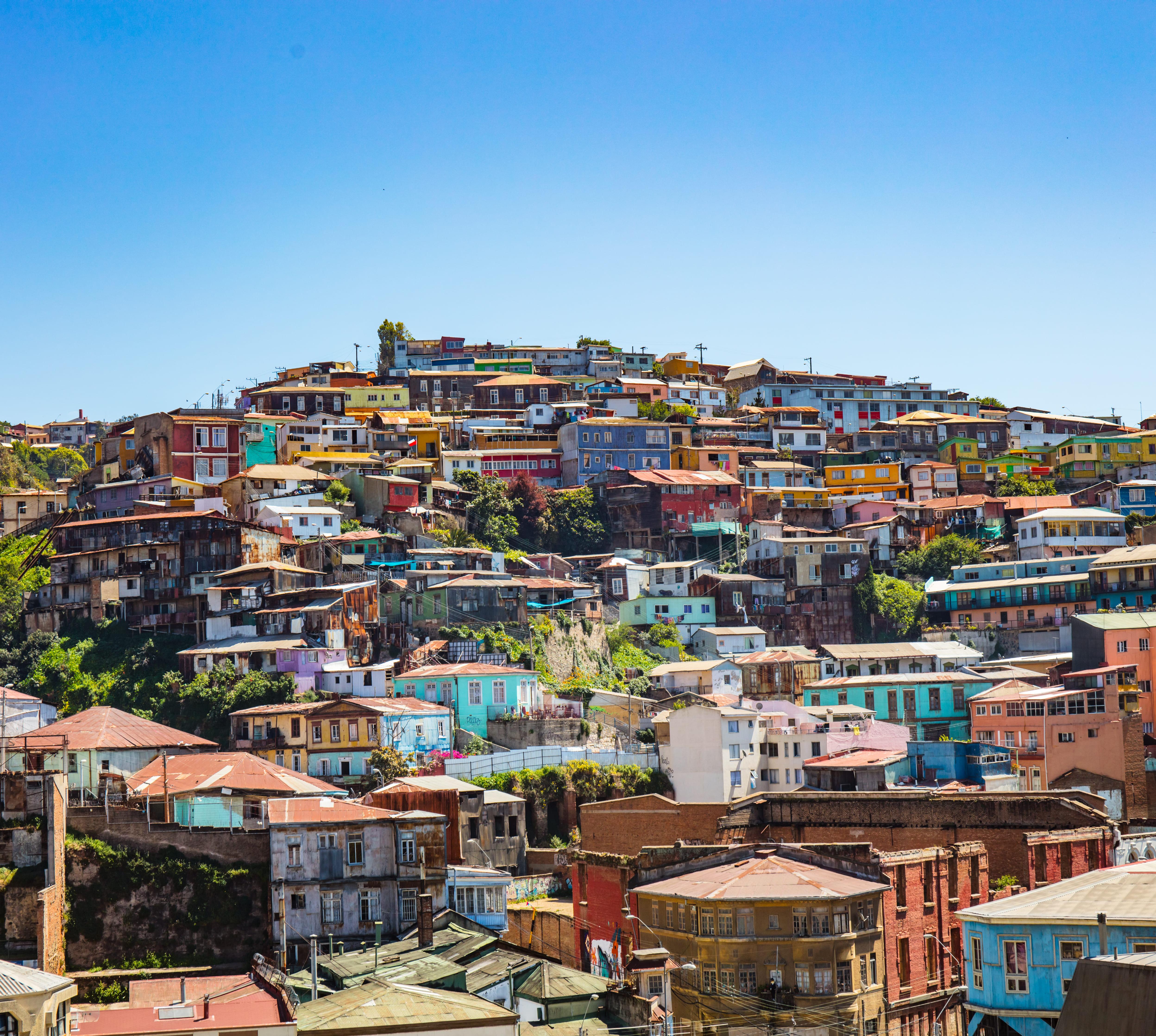 Valparaíso ist bekannt für die vielen bunten Häuser, die an den steilen Hügeln zu kleben scheinen. 42 Hügel (cerros) säumen den Hafen und den El Plan genannten Küstenstreifen. Knarzende Schrägaufzüge und unzählige Treppen führen hoch auf die cerros. Cerro Concepción und Alegre gehören zum historischen Kern der Stadt, der 2003 Unesco-Weltkulturerbe wurde. Am besten erkundest du Valparaíso zu Fuß und nimmst dir genug Zeit, um dich in den vielen kleinen Gassen und auf den Treppen zu verirren – denn so findet man die schönsten Orte.