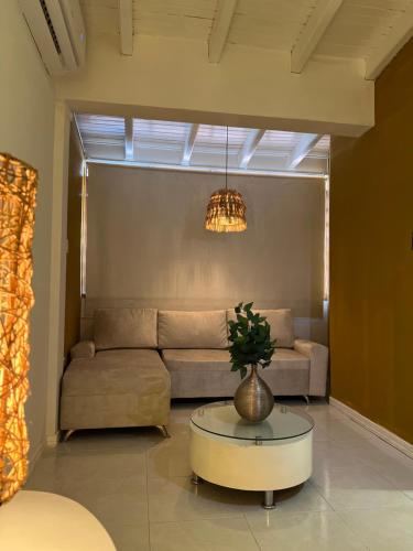 Diese Ferienwohnung mit Klimaanlage ist versehen mit 1 Schlafzimmer, Flachbild-TV, einem Essbereich, einer Küche mit einem Kühlschrank und einem Wohnzimmer.