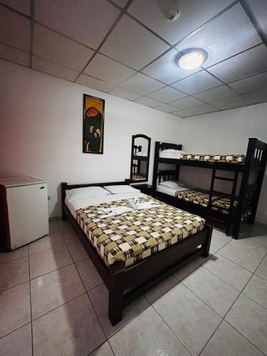In der Unterkunft Posada Restaurant La Guaricha sind die Zimmer versehen mit einer Klimaanlage, einem Kleiderschrank, einem Flachbild-TV, einem eigenen Badezimmer, Bettwäsche, Handtüchern und einer Terrasse mit Stadtblick.