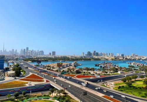 Stunning Views and Relaxation Our One-Bedroom Creek View Apartments offer breathtaking views of Dubai Creek, the Burj Khalifa, Dubai Frame, and the dazzling city skyline. Relax on your private balcony while soaking in the serene beauty of the water and Dubai's iconic landmarks.
