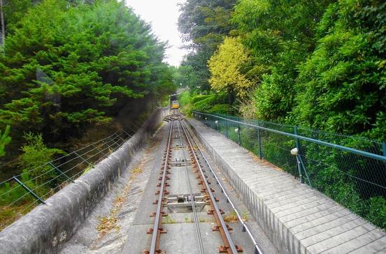 Auf den Berg fährt eine Seilbahn (funicular), die einen Höhenunterschied von 160 m überbrückt.